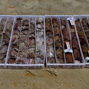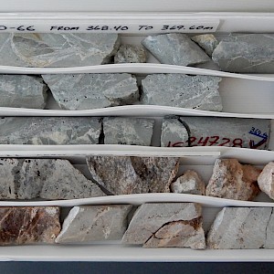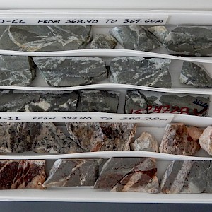 Durazno quartz vein in core boxes, CC-10-05, Coneto property.