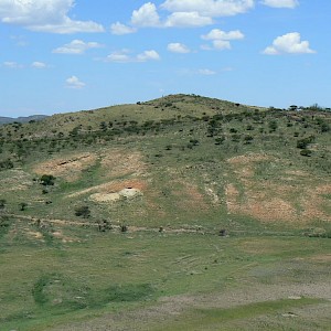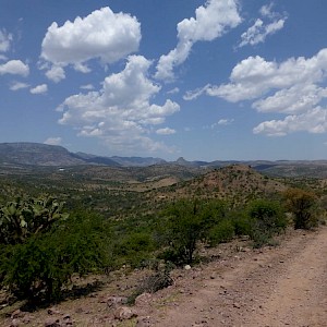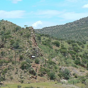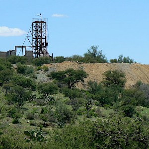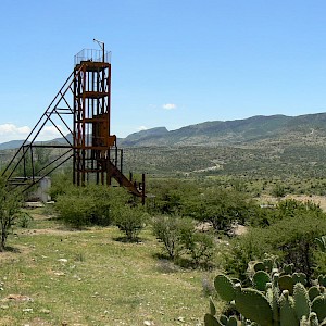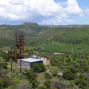 North Shaft with rhyolite mesa in the distance, Coneto Mine, Coneto property.