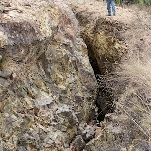 Calaveras quartz vein outcrop, Coneto property.