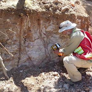 Velia Ledezma, Gary Cope, Dale Brittliffe and Ben Whiting on the Boleras Deposit.